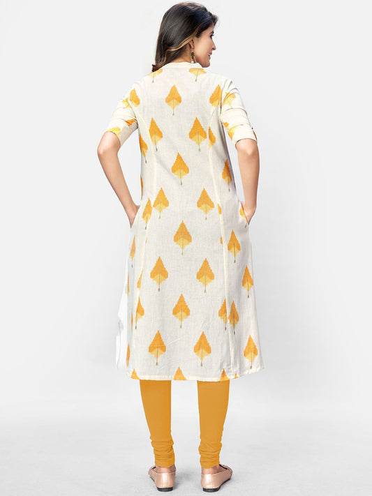 Vbuyz Women's Printed A-Line Cotton Beige Kurta